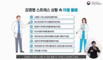 □ 이와 함께, 코로나19로 인한 스트레스 상황에서 마음을 돌보는 방법을 담은 감염병 스트레스 마음돌봄 수어영상도 제작‧배포하여 청각‧언어 장애인들이 보다 편리하게 활용할 수 있게 된다.