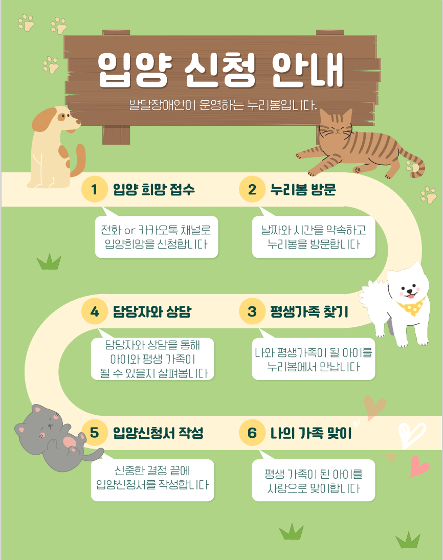» 유기동물입양쉼터 '누리봄' 발달장애인 일자리 창출 및 입양 file Good Job 자립생활센터 2022.04.27 162