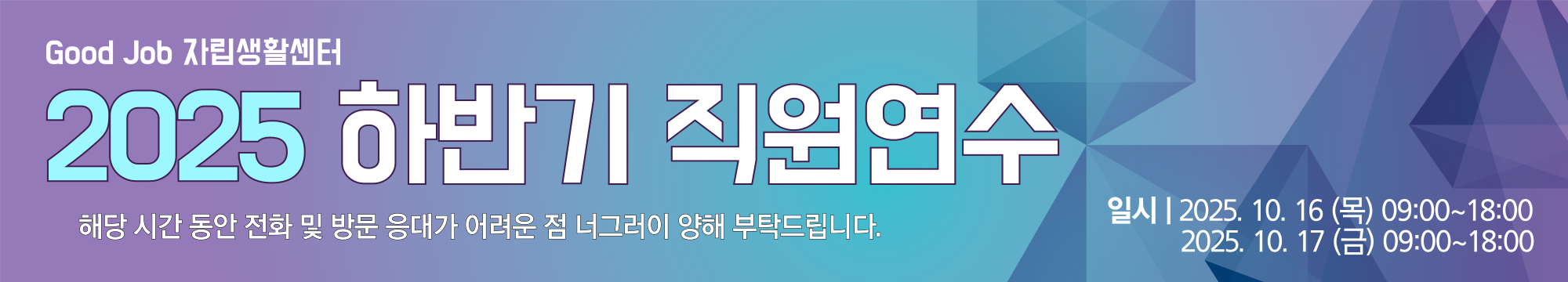 2025 하반기 직원연수로 인해 센터 내 부재로 전화 응대가 어려울 수 있음. 일시: 10월 16일(목), 17일(금) 09:00~18:00